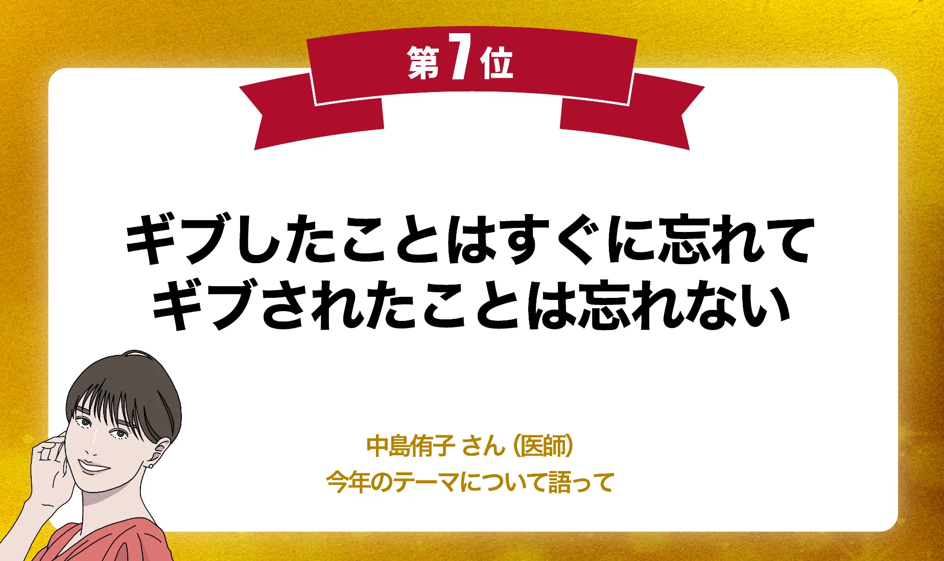 心を込めてギブしても、その思いが必ず届くとは限らない。だが、一喜一憂せず、与えるより、もらった優しさに感謝する生き方をしたいと語る中島さん。ギブしたモノに執着するより、ギブされた感謝を強く意識することで、周囲への接し方は、優しくなっていくのかも。