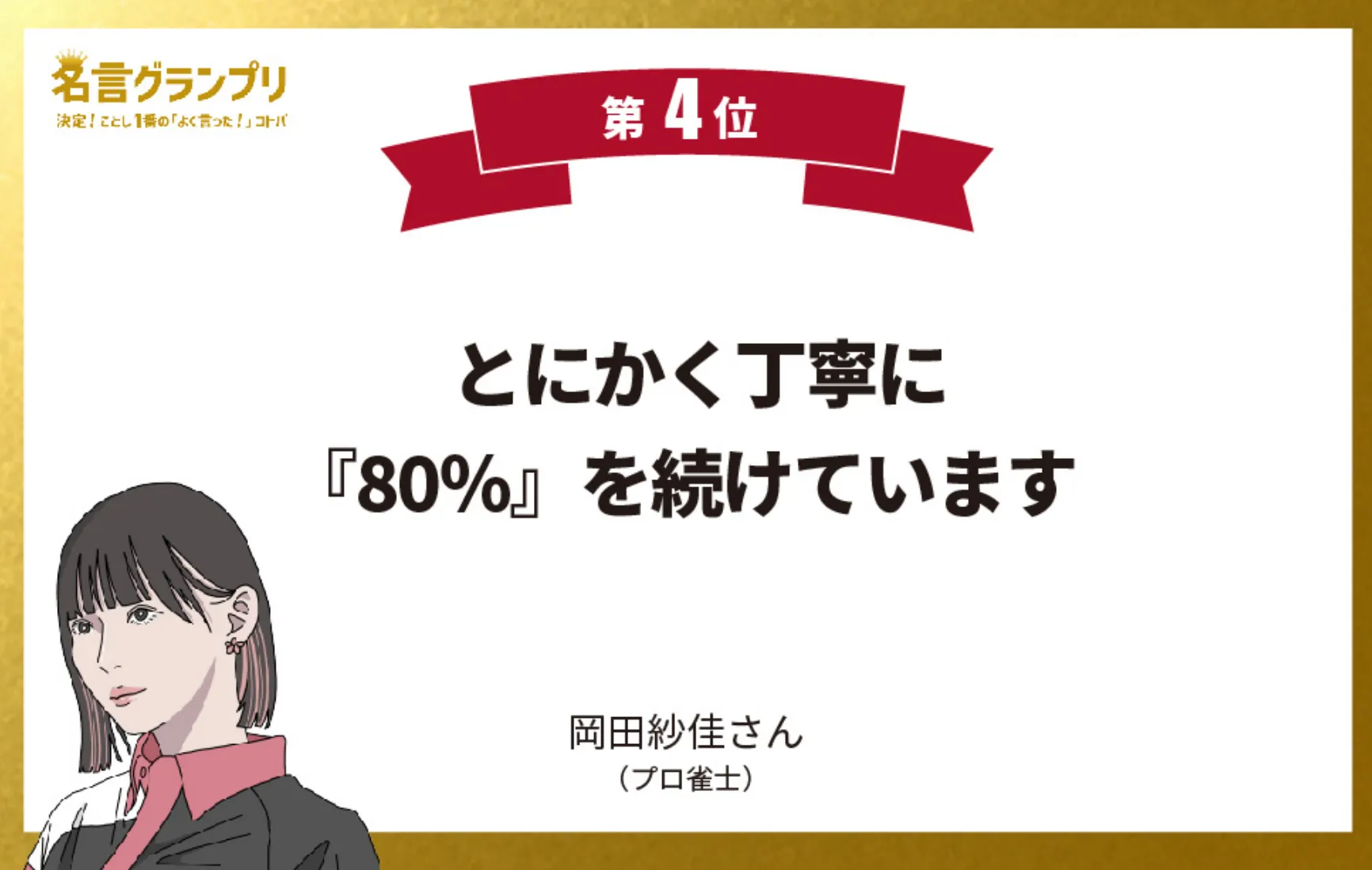 2024年もっとも影響力のあるタレントランキングの一人に選ばれた岡田さん。「24時間全力で頑張る」考え方とは対照的に、心にゆとりを持つ中庸な生き方が主流となっている現代的な世相を象徴するコトバ。