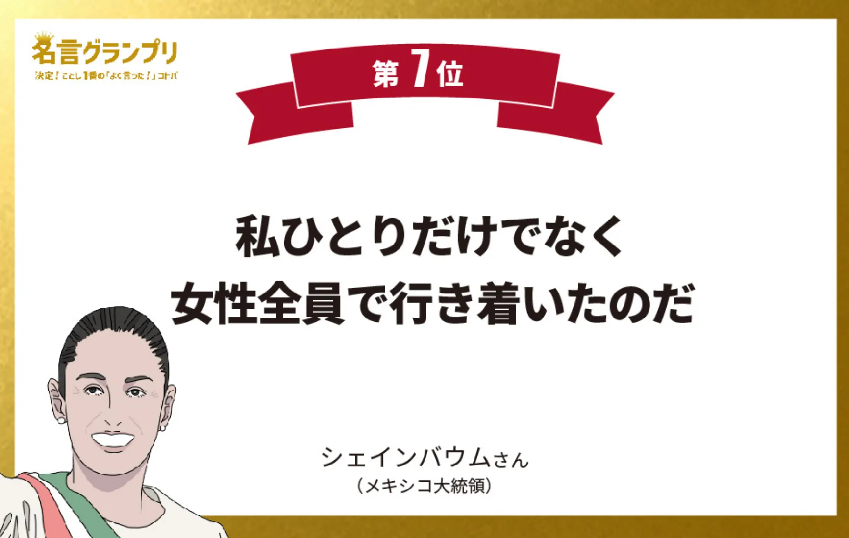 2024年、メキシコで史上初の女性大統領が誕生した。伝統的に男性優位の考えが根づよいこの国で勝ち取った歴史的な結果について、彼女が演説で語ったコトバ。